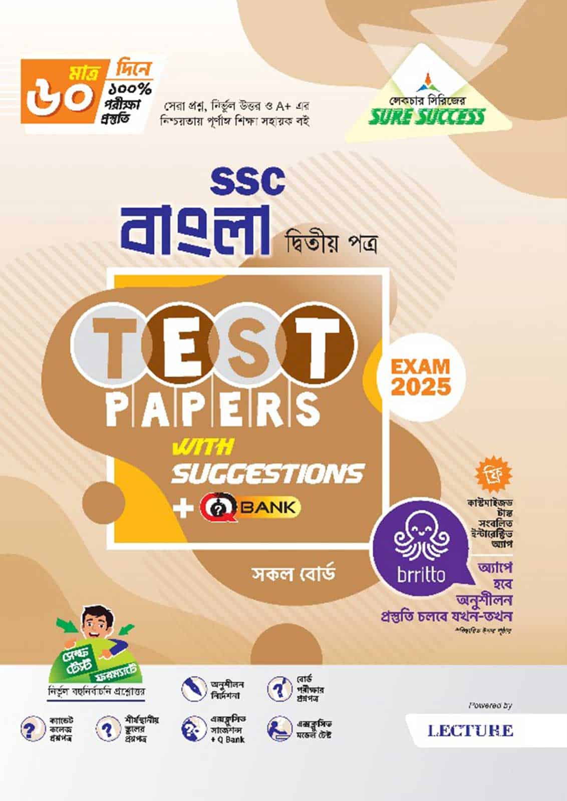 দেশসেরা মাস্টার ট্রেইনার ও বোর্ড পরীক্ষক প্যানেল বিগত বছরসমূহের বোর্ড পরীক্ষা, ক্যাডেট কলেজ এবং শীর্ষস্থানীয় স্কুলসমূহের প্রশ্নপত্র বিশ্লেষণ করে ১০০% প্রস্তুতি উপযোগী জ্ঞানমূলক, অনুধাবনমূলক, সৃজনশীল ও বহুনির্বাচনি প্রশ্ন নির্বাচন করেছেন। এসব প্রশ্ন টেস্ট পেপারস বইয়ে প্রশ্নপত্র ও এক্সক্লুসিভ সাজেশন্স আকারে সংযোজন করা হয়েছে। অভিনব কৌশলে উপস্থাপিত এসব প্রশ্নসম্ভারই হলো Q Bank। এস এস সি পরীক্ষায় A+ নিশ্চিত করতে সৃজনশীল ও বহুনির্বাচনি উভয় অংশে সমান গুরুত্ব দিয়ে অনুশীলন করতে হবে। প্রশ্নগুলোর উত্তর অনুশীলনের মাধ্যমে শিক্ষার্থীরা এসএসসি পরীক্ষা ২০২৫-এর জন্য নিজেদের সেরা প্রস্তুতি নিশ্চিত করতে সক্ষম হবে, আর সাথে থাকা ইন্টিগ্রেটেড ‘brritto’ অ্যাপটি বহুনির্বাচনি অংশের অনুশীলন আরও কার্যকর করবে